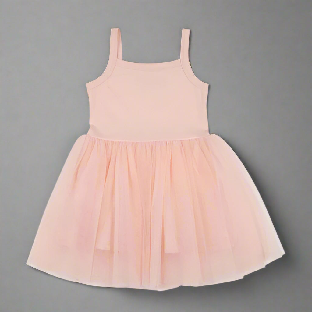Introducing our new (Everyday's a ) Party Dress... A soft cotton body with a simple tulle skirt in a soft blushing pink colour.