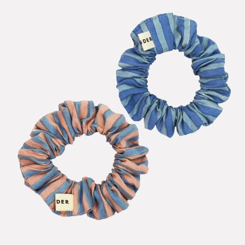 Add a pop of color to your hair with YONDER's Cotton Mini Scrunchie Duo in a lively Blue Mix. These scrunchies are handcrafted by artisans in Morocco and India, using traditional, skilled, and sustainable production practices. They are the perfect accessory to elevate your look while showcasing your commitment to fairtrade and stylishly organic products. I