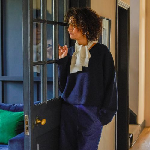 Made in an beautiful knit with rib detailing, the Quinn Scarf in Cream is the perfect companion for chilly days. Its short length adds a touch of style and warmth without overwhelming your outfit.