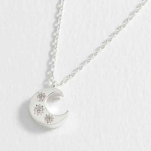 Go for a celestial look with our CZ Moon Pendant. Featuring a moon charm with three clear cubic-zirconia stones, this necklace adds a bit of sparkle to your style.
